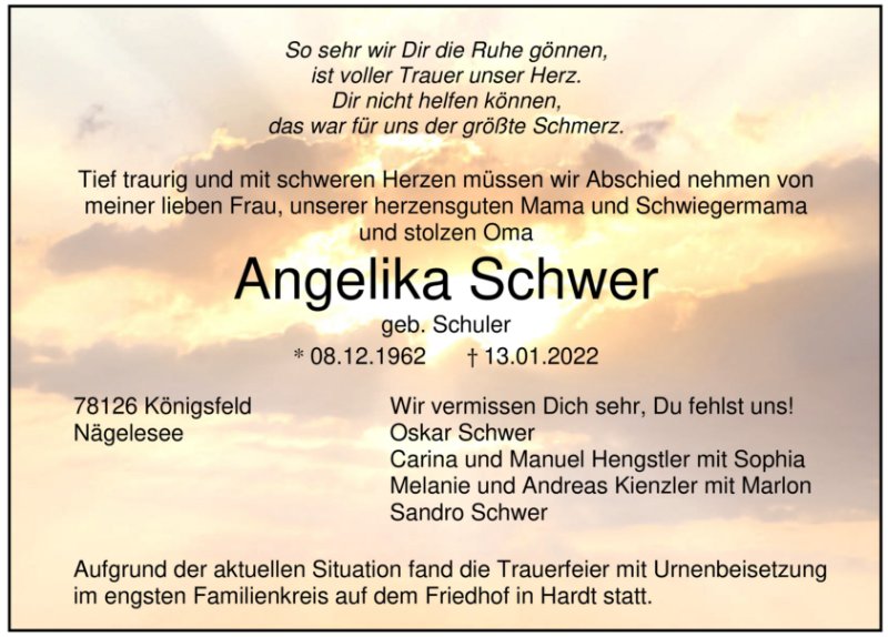 wir wünschen Ihnen von Herzen viel Kraft, dass Sie Menschen um sich haben, die Ihnen in dieser schweren Zeit beistehen und Halt geben. Zusätzlich können Sie auf dieser Gedenkseite Erinnerungen teilen und so das Andenken gemeinsam wachhalten.