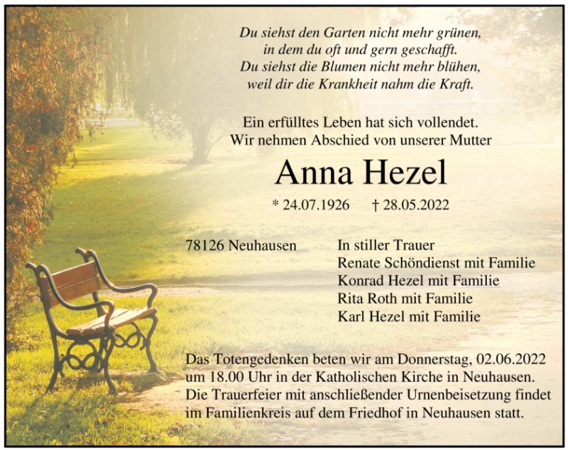 wir wünschen Ihnen für die kommende Zeit viel Kraft und dass es Ihnen gelingt, dankbar auf die positiven Erinnerungen zurückzublicken. Diese Gedenkseite möge Ihnen dabei helfen, Ihre Trauer zu teilen und das Andenken gemeinsam wachzuhalten.