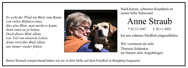 Lesen Sie hier die Anzeigen und Trauerpost!