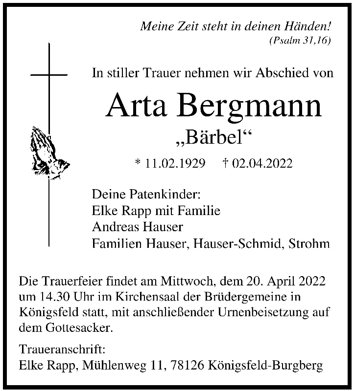 gestorben am 2. April 2022 in Königsfeld