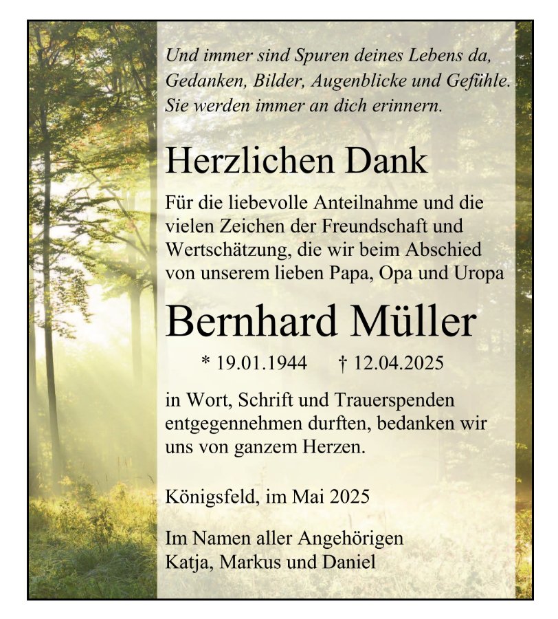 in diesen Tagen fühlen wir mit Ihnen und wünschen Ihnen von Herzen, dass Sie aus den glücklichen Erinnerungen Kraft schöpfen, um positiv in die Zukunft zu gehen. Diese Gedenkseite möge Ihnen dabei helfen, Ihre Trauer zu teilen und das Andenken gemeinsam wachzuhalten.