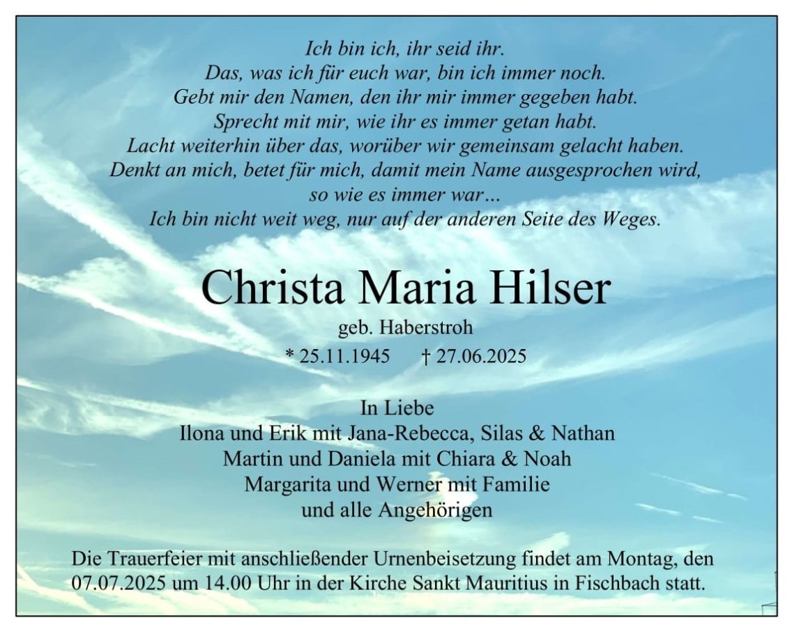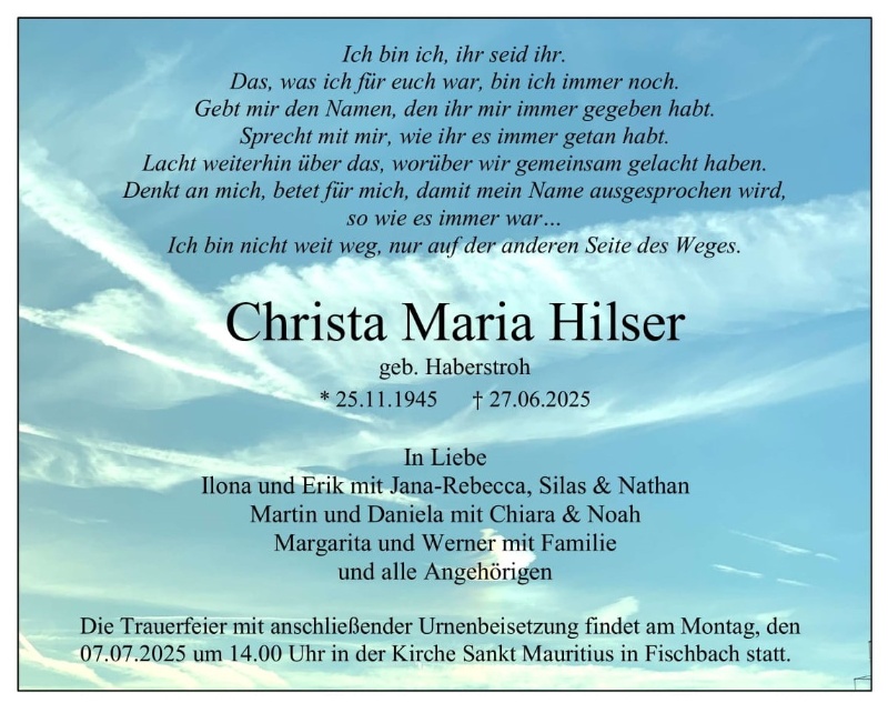 Wer im Herzen seiner Lieben lebt, ist nicht tot, er ist nur fern.