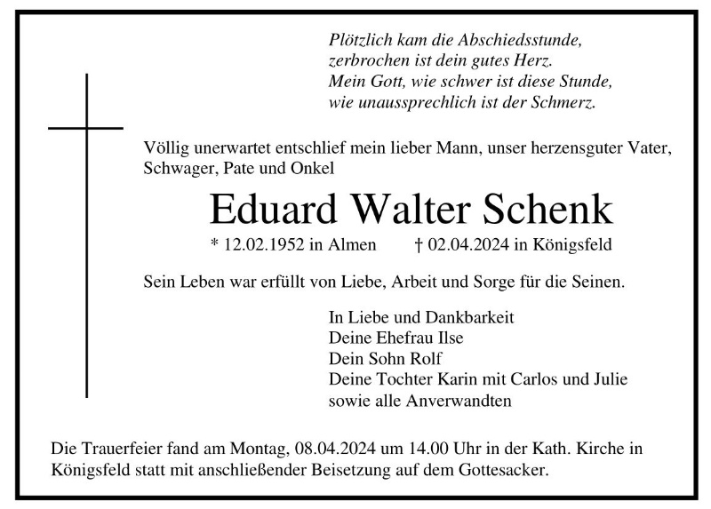 mit deinem Tod verlieren wir vieles, nur nicht die schöne Zeit mit dir. Ich danke dir dafür Franz Schenk