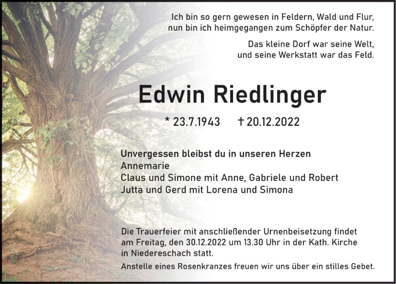 Lesen Sie hier die Anzeigen und Trauerpost!