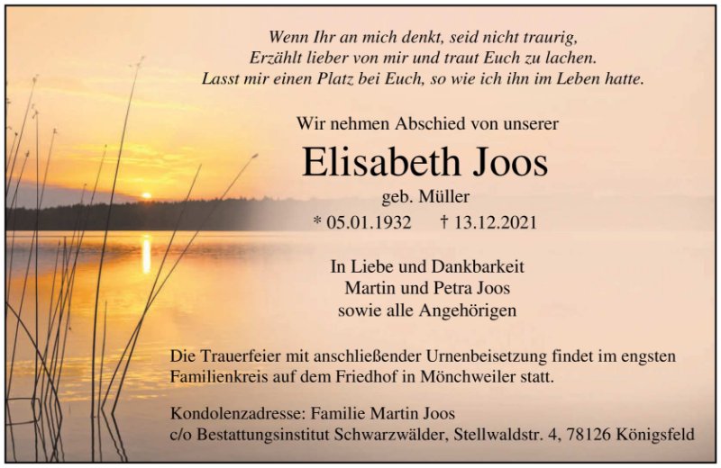 Lesen Sie hier die Anzeigen und Trauerpost!