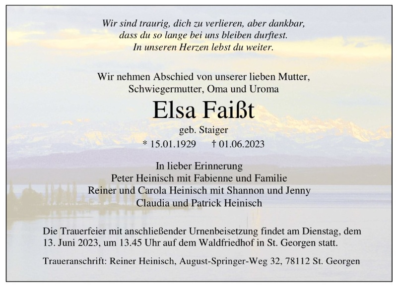 wir wünschen Ihnen von Herzen viel Kraft, dass Sie Menschen um sich haben, die Ihnen in dieser schweren Zeit beistehen und Halt geben. Zusätzlich können Sie auf dieser Gedenkseite Erinnerungen teilen und so das Andenken gemeinsam wachhalten.