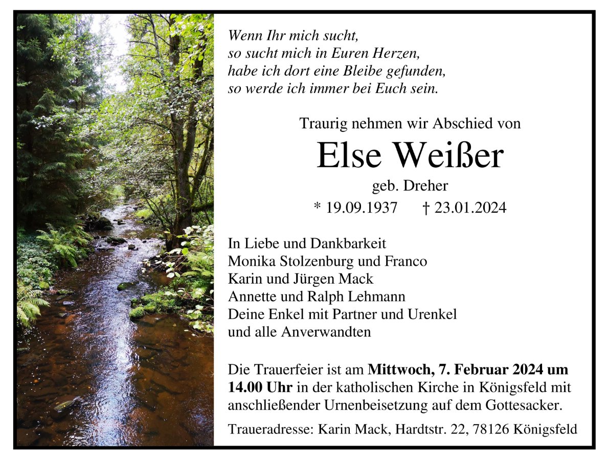 Else Weißergestorben am 23. Januar 2024