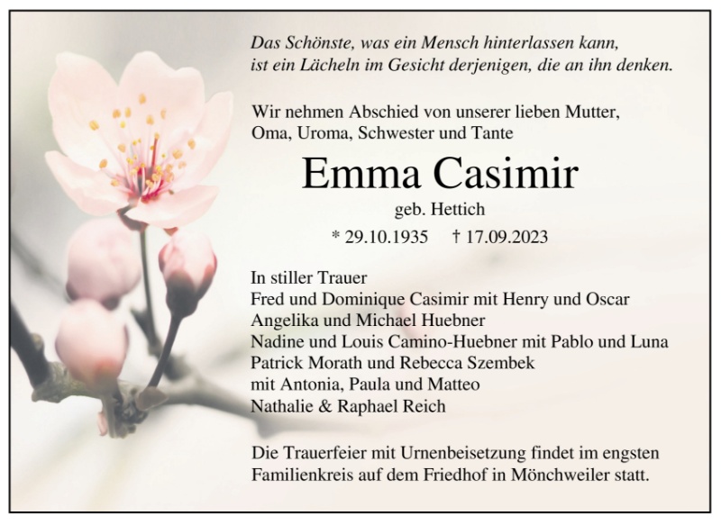 wir wünschen Ihnen von Herzen viel Kraft, dass Sie Menschen um sich haben, die Ihnen in dieser schweren Zeit beistehen und Halt geben. Zusätzlich können Sie auf dieser Gedenkseite Erinnerungen teilen und so das Andenken gemeinsam wachhalten.