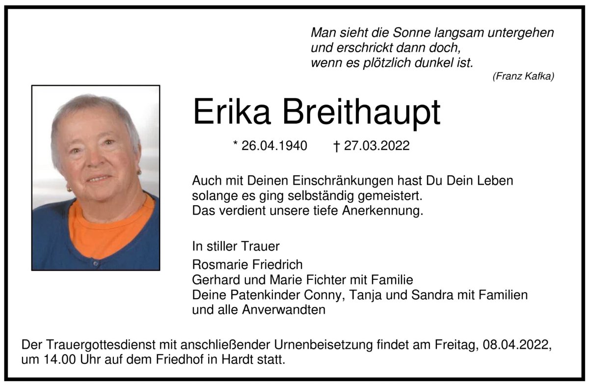 Lesen Sie hier die Anzeigen und Trauerpost!
