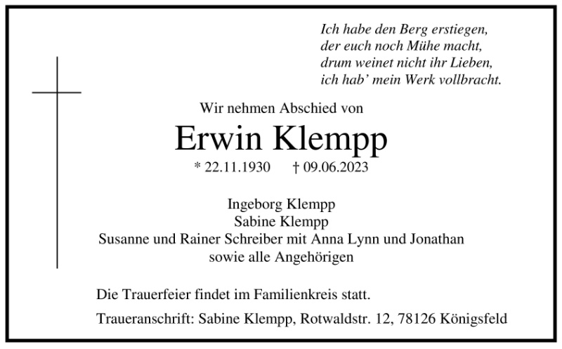 gestorben am 9. Juni 2023 in Königsfeld