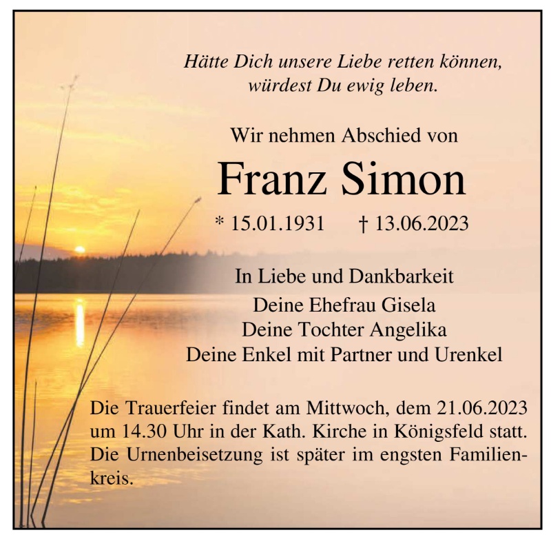 wir wünschen Ihnen für die kommende Zeit viel Kraft und dass es Ihnen gelingt, dankbar auf die positiven Erinnerungen zurückzublicken. Diese Gedenkseite möge Ihnen dabei helfen, Ihre Trauer zu teilen und das Andenken gemeinsam wachzuhalten.