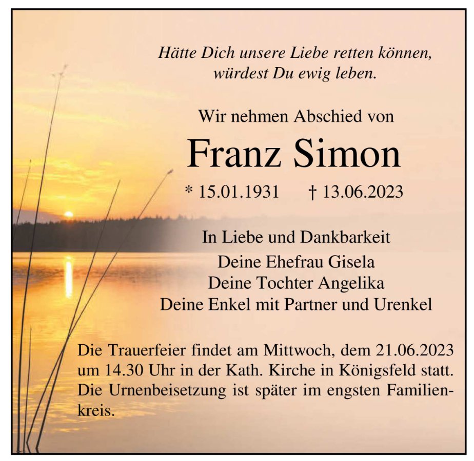 Lesen Sie hier die Anzeigen und Trauerpost!