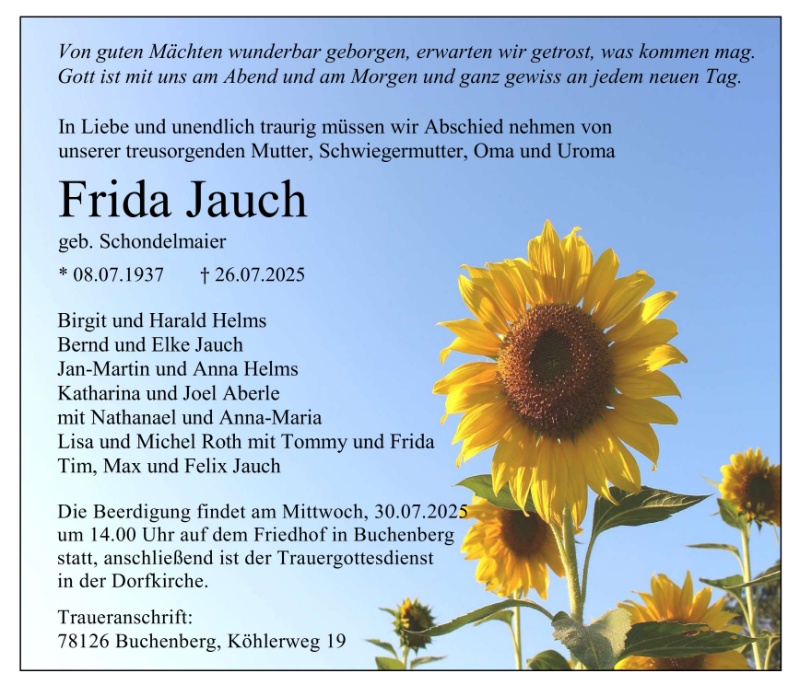 Lesen Sie hier die Anzeigen und Trauerpost!