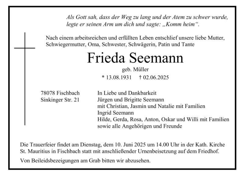 gestorben am 2. Juni 2025 in Villingen-Schwenningen