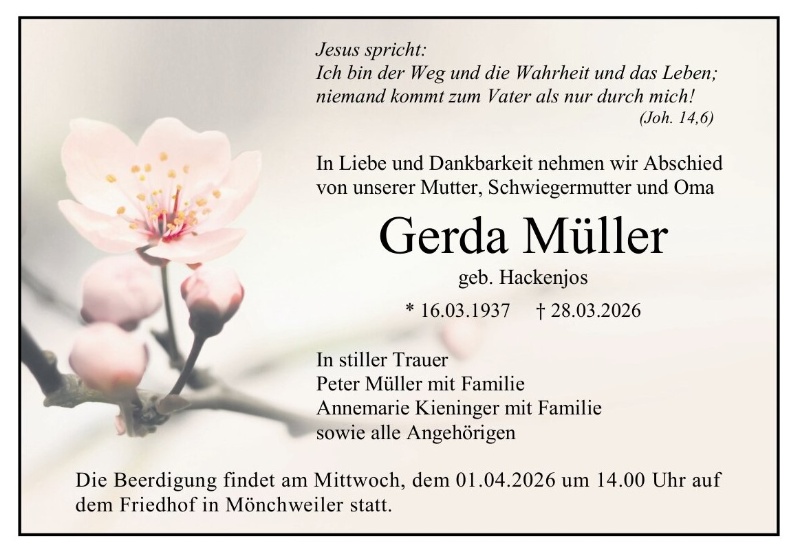Lesen Sie hier die Anzeigen und Trauerpost!