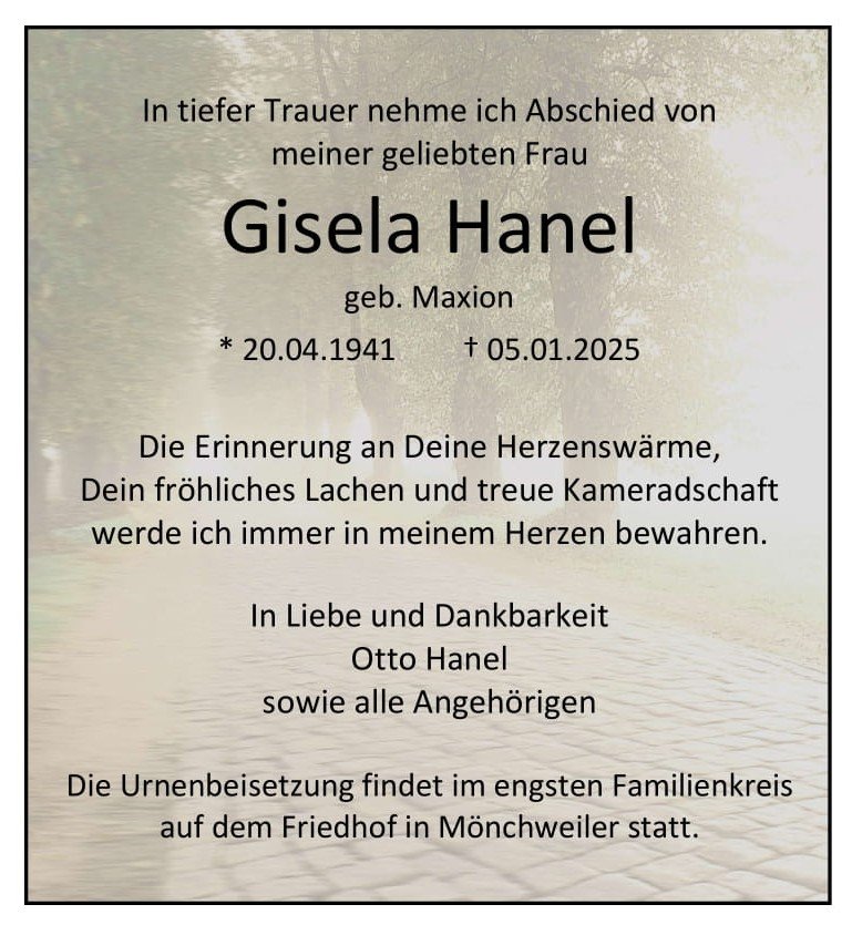 Zur FotobuchsoftwareGisela Hanel geb. Maxion