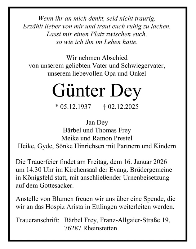 in diesen Tagen fühlen wir mit Ihnen und wünschen Ihnen von Herzen, dass Sie aus den glücklichen Erinnerungen Kraft schöpfen, um positiv in die Zukunft zu gehen. Diese Gedenkseite möge Ihnen dabei helfen, Ihre Trauer zu teilen und das Andenken gemeinsam wachzuhalten.