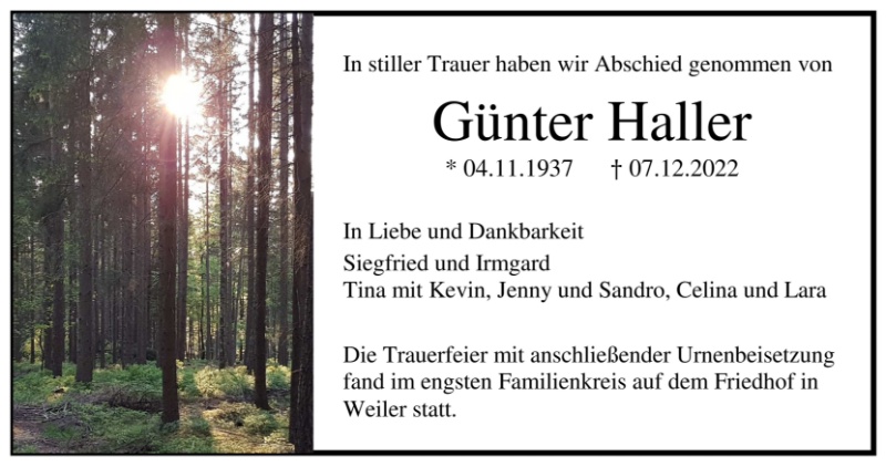 Lesen Sie hier die Anzeigen und Trauerpost!