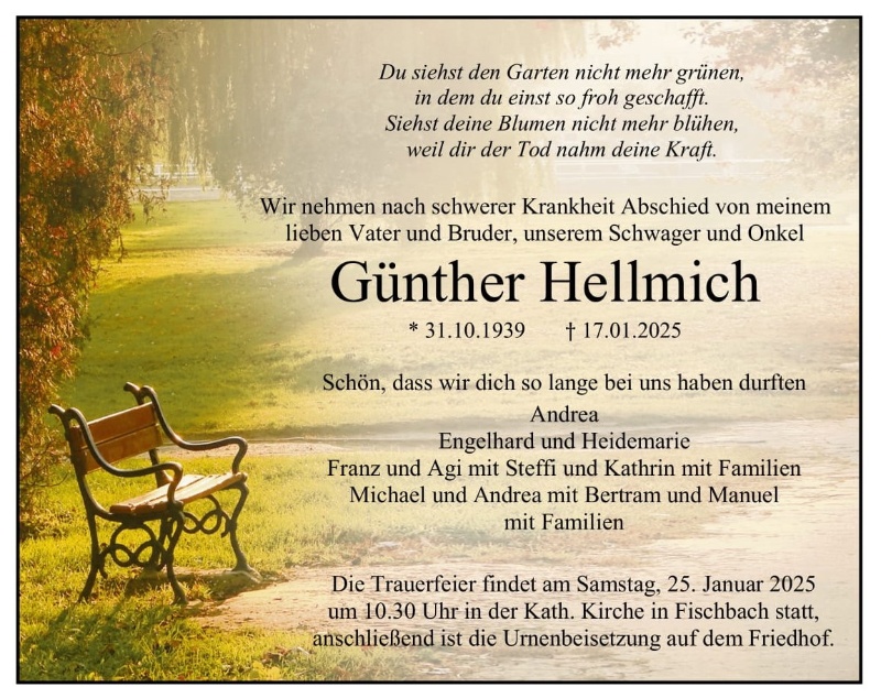 in dieser Zeit des Schmerzes wünschen wir Ihnen Kraft, den Verlust im Kreise Ihrer Liebsten zu verarbeiten. Als Zeichen unserer Anteilnahme und des Gedenkens entzünden wir dieses erste Licht. Möge diese Gedenkseite Ihnen helfen, Erinnerungen zu teilen und so das Andenken gemeinsam wachzuhalten.