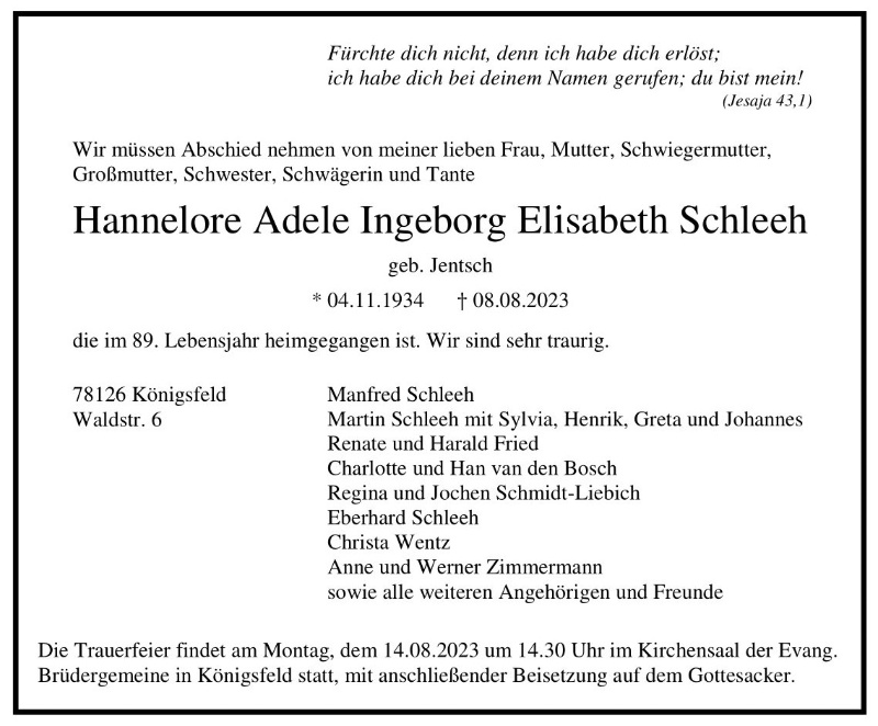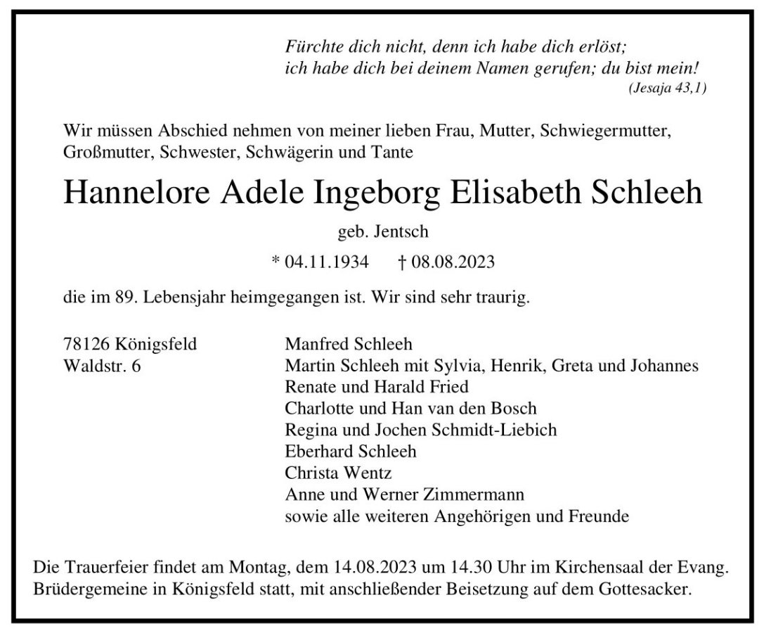 Hannelore Schleeh geb. Jentsch