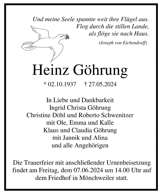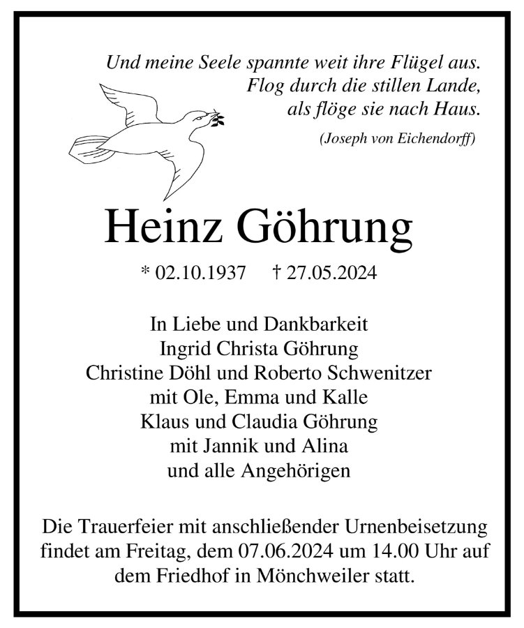 Lesen Sie hier die Anzeigen und Trauerpost!