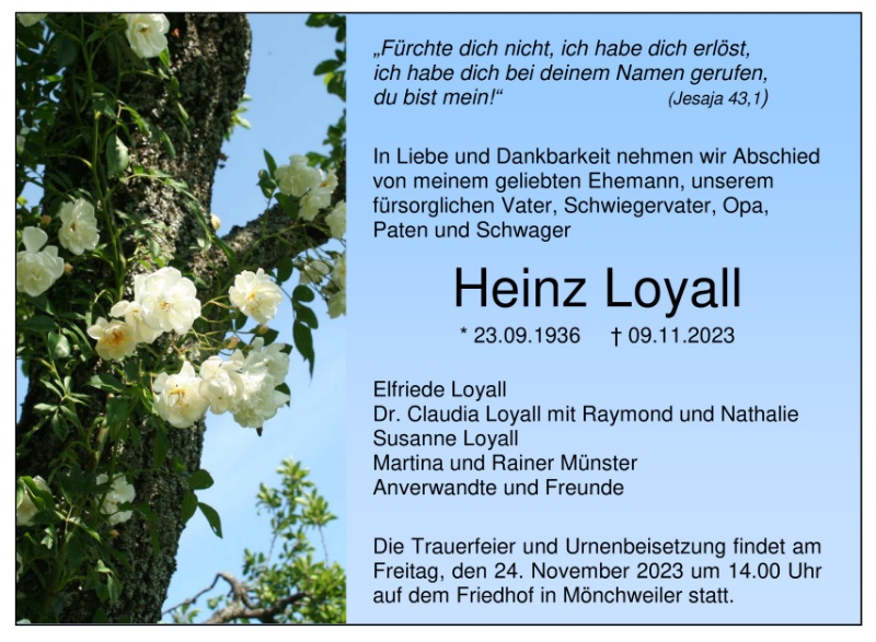 Sprechen Sie im Kondolenzbuch den Hinterbliebenen Ihr Beileid aus und teilen Sie persönliche Gedanken und Erinnerungen mit anderen.