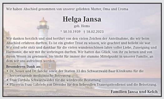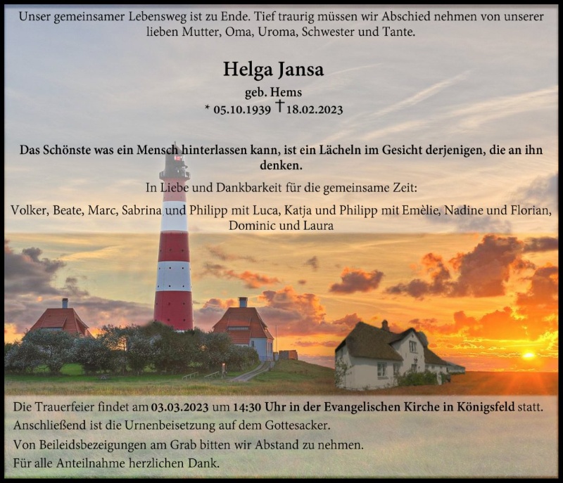 Lesen Sie hier die Anzeigen und Trauerpost!