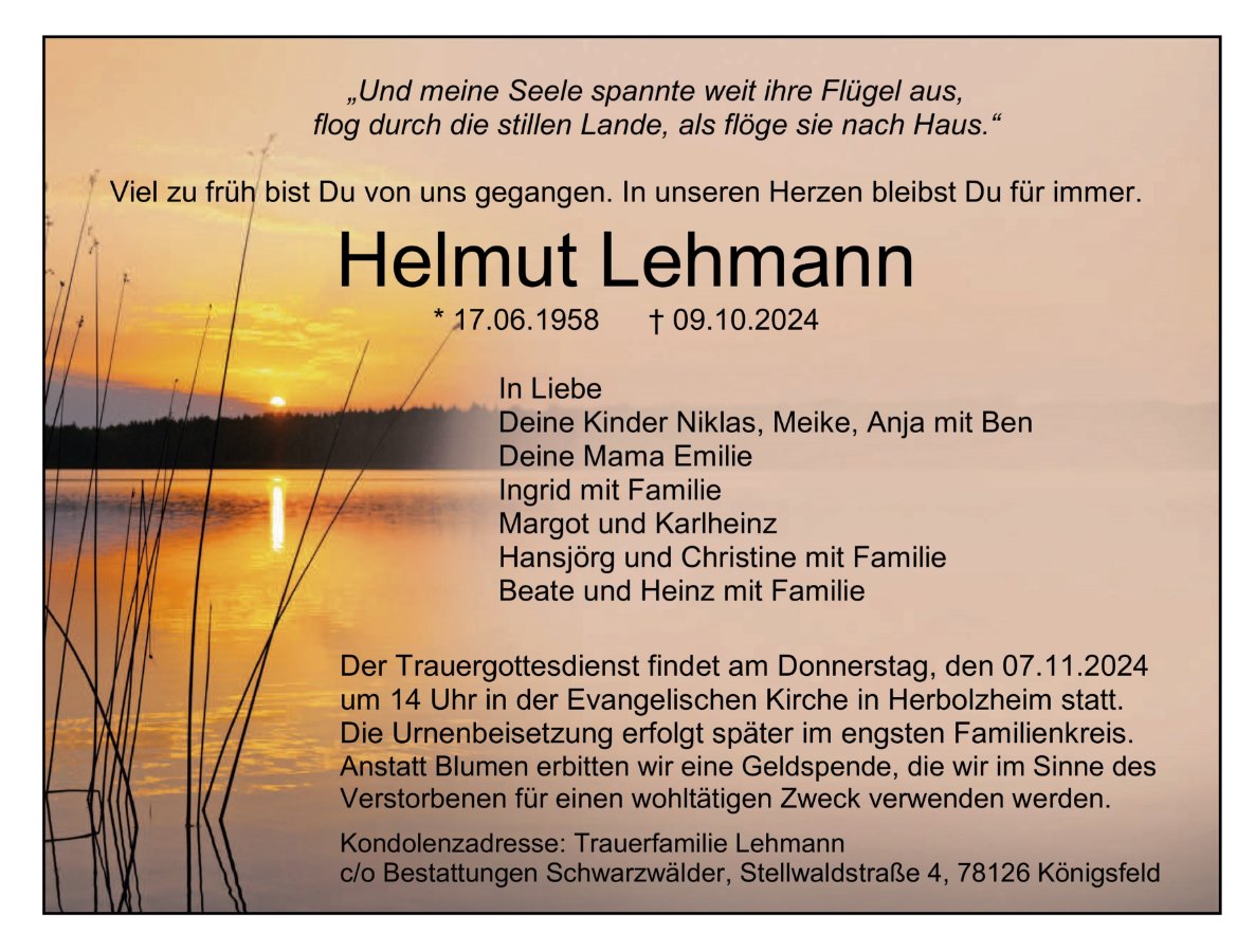 Helmut Lehmanngestorben am 9. Oktober 2024