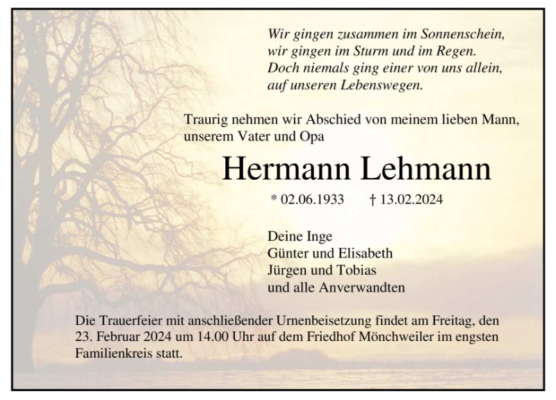 Lesen Sie hier die Anzeigen und Trauerpost!