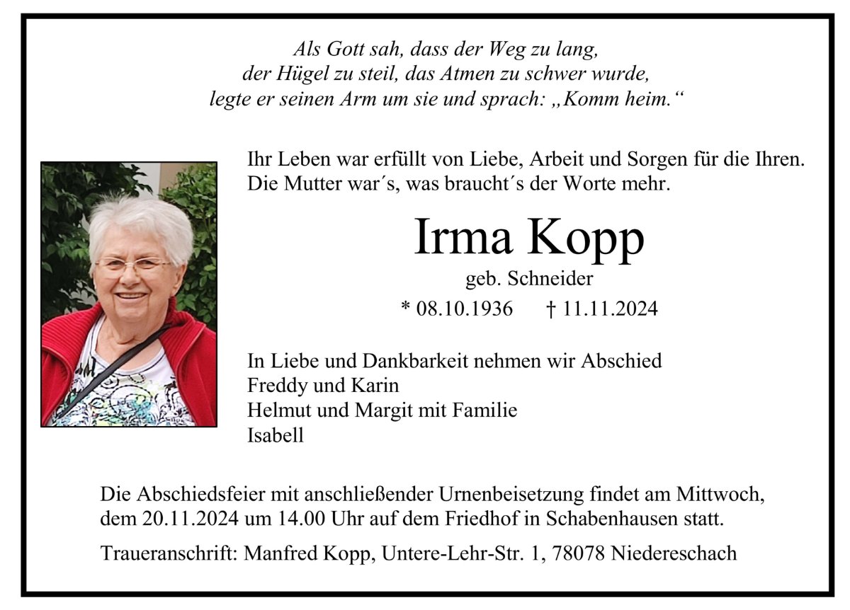 Irma Kopp geb. Schneider