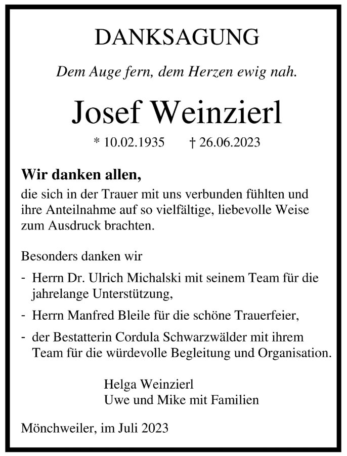 wir wünschen Ihnen für die kommende Zeit viel Kraft und dass es Ihnen gelingt, dankbar auf die positiven Erinnerungen zurückzublicken. Diese Gedenkseite möge Ihnen dabei helfen, Ihre Trauer zu teilen und das Andenken gemeinsam wachzuhalten.