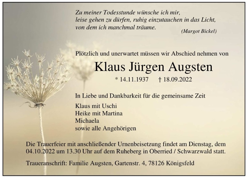 gestorben am 18. September 2022 in Königsfeld