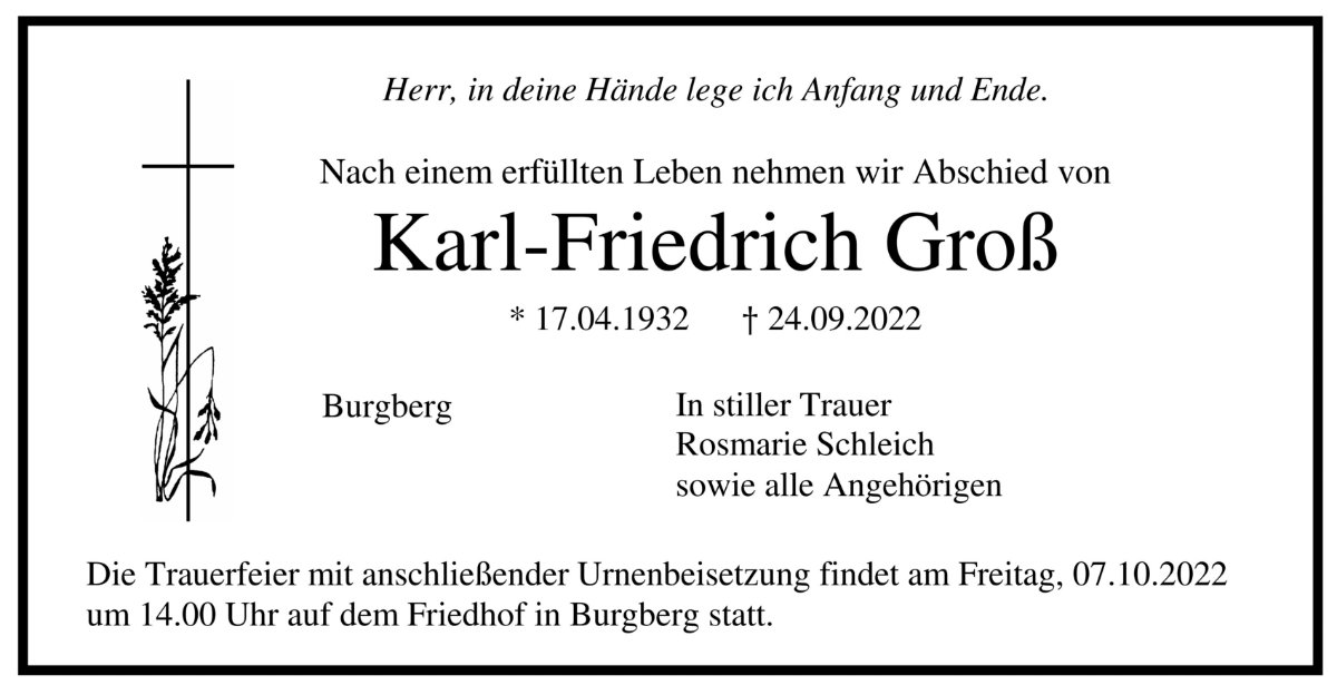 gestorben am 24. September 2022 in Burgberg