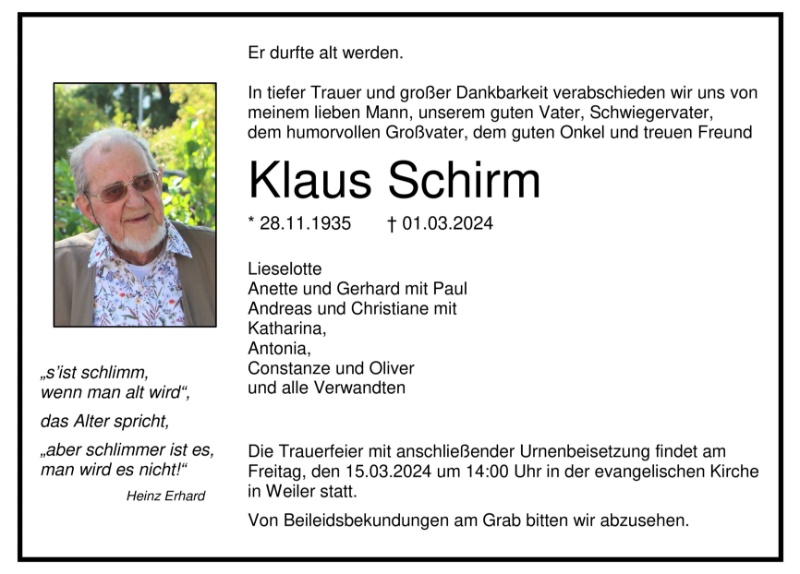 wir wünschen Ihnen für die kommende Zeit viel Kraft und dass es Ihnen gelingt, dankbar auf die positiven Erinnerungen zurückzublicken. Diese Gedenkseite möge Ihnen dabei helfen, Ihre Trauer zu teilen und das Andenken gemeinsam wachzuhalten.