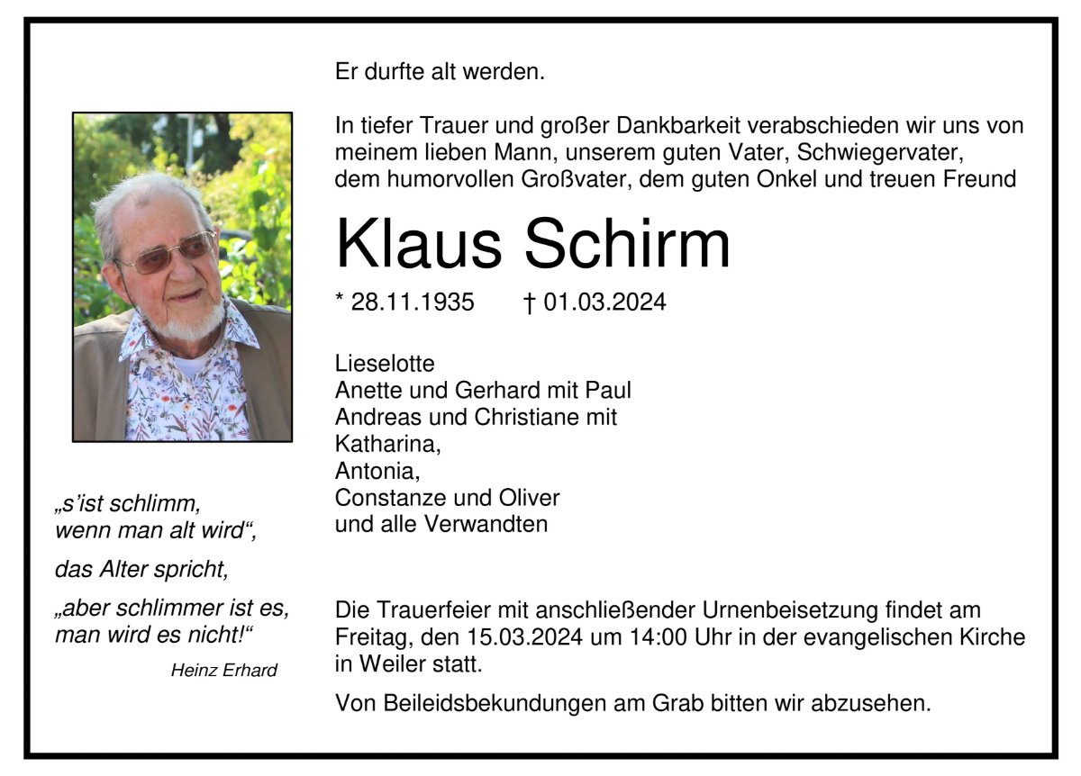Lesen Sie hier die Anzeigen und Trauerpost!
