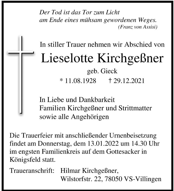 Sehen Sie hier die Termine der Abschieds- und Trauerfeierlichkeiten.