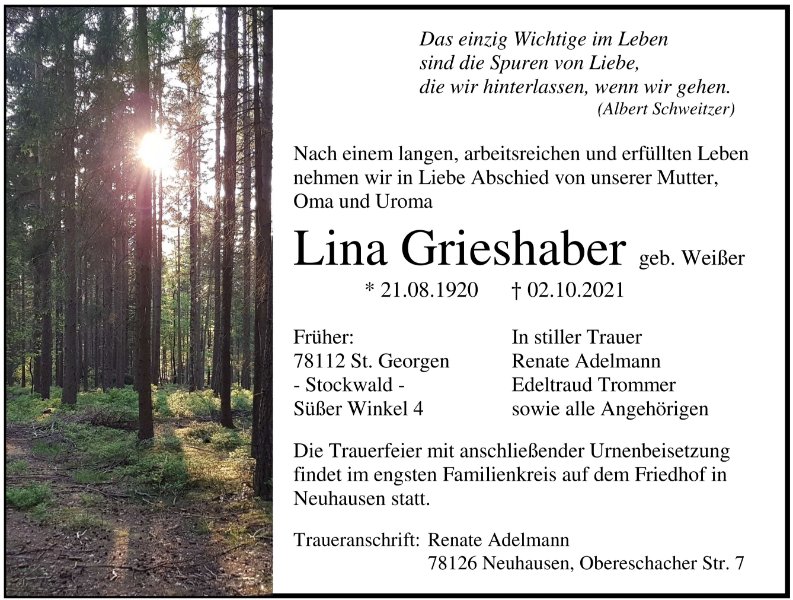 Lesen Sie hier die Anzeigen und Trauerpost!