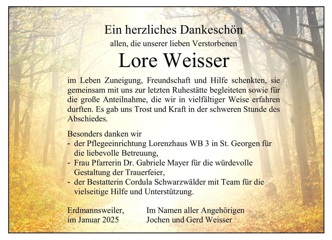 Lore Weißergestorben am 4. Januar 2025
