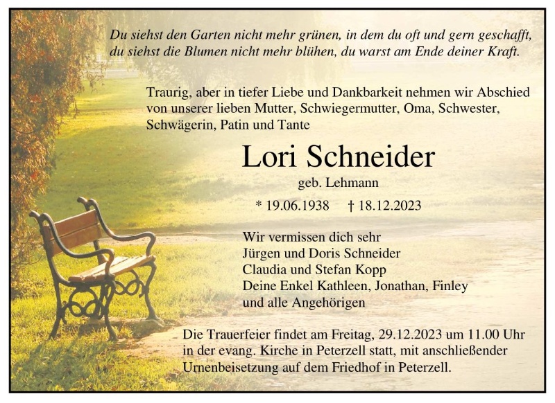 Lesen Sie hier die Anzeigen und Trauerpost!