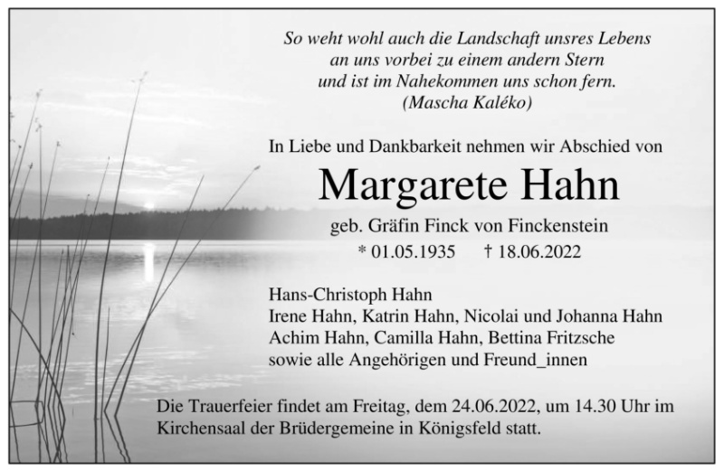 Margarete Hahn geb. Gräfin Finck von Finckenstein
