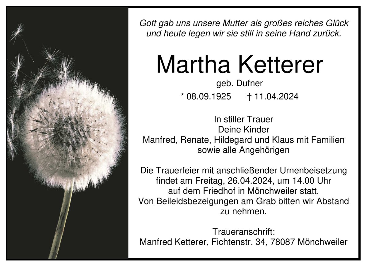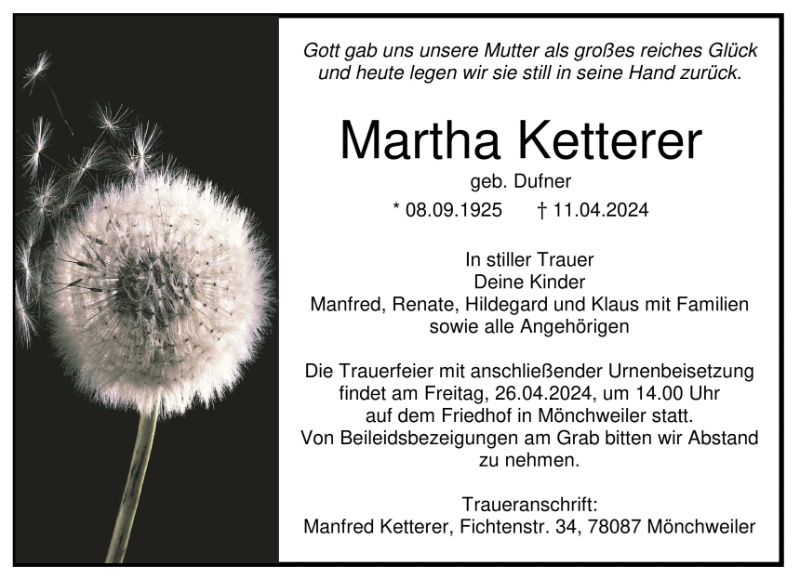 Martha Ketterer geb. Dufner