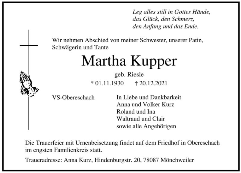 Martha Kupper geb. Riesle