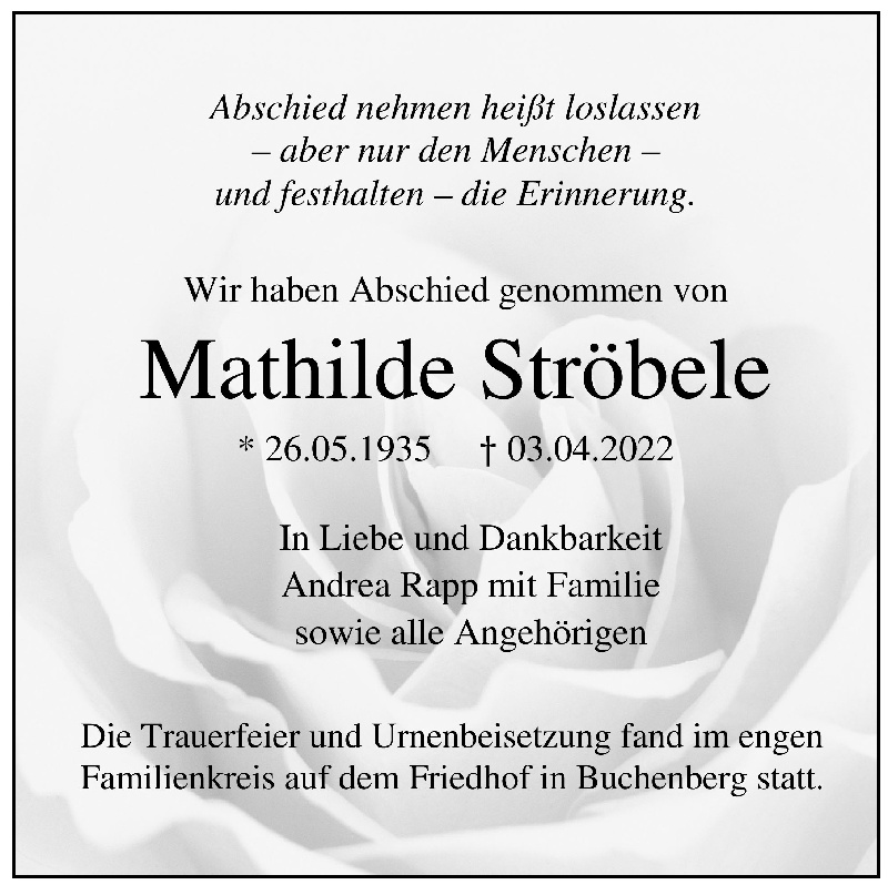 Lesen Sie hier die Anzeigen und Trauerpost!