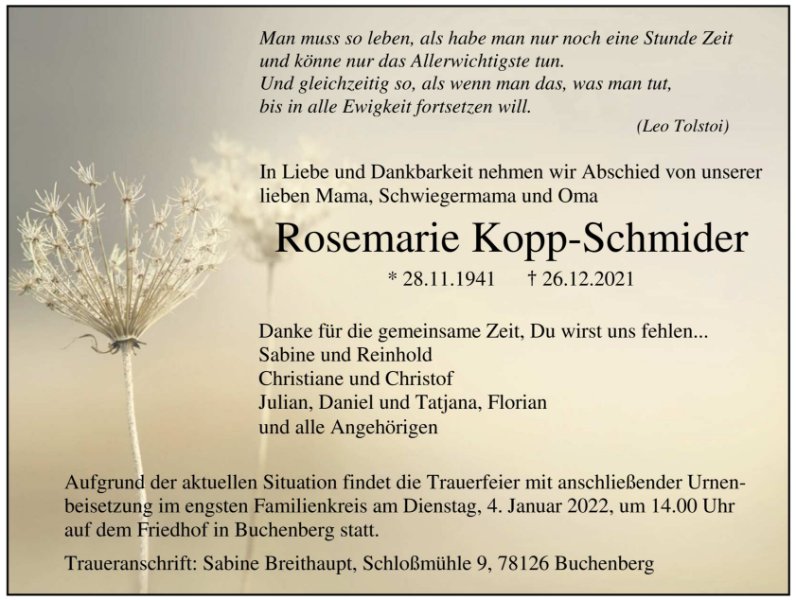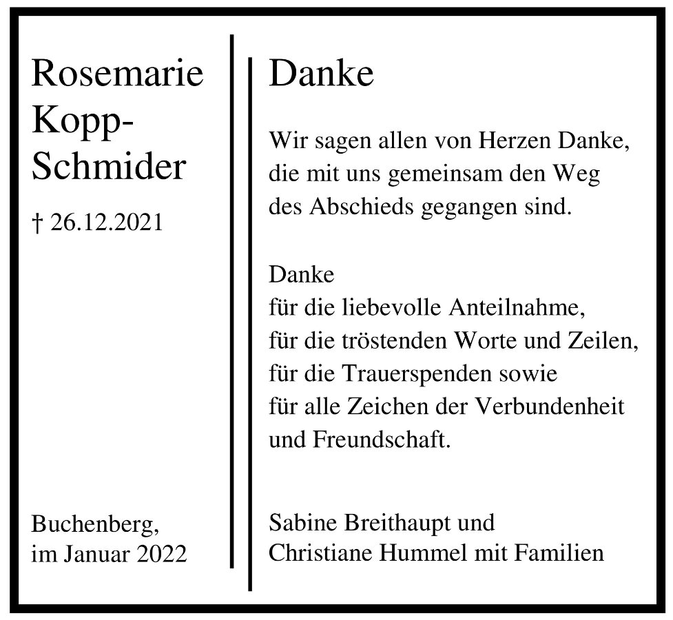 Rosemarie Kopp-Schmider geb. Haller
