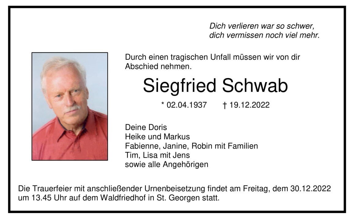 Lesen Sie hier die Anzeigen und Trauerpost!
