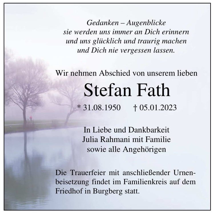 in dieser Zeit des Schmerzes wünschen wir Ihnen Kraft, den Verlust im Kreise Ihrer Liebsten zu verarbeiten. Als Zeichen unserer Anteilnahme und des Gedenkens entzünden wir dieses erste Licht. Möge diese Gedenkseite Ihnen helfen, Erinnerungen zu teilen und so das Andenken gemeinsam wachzuhalten.