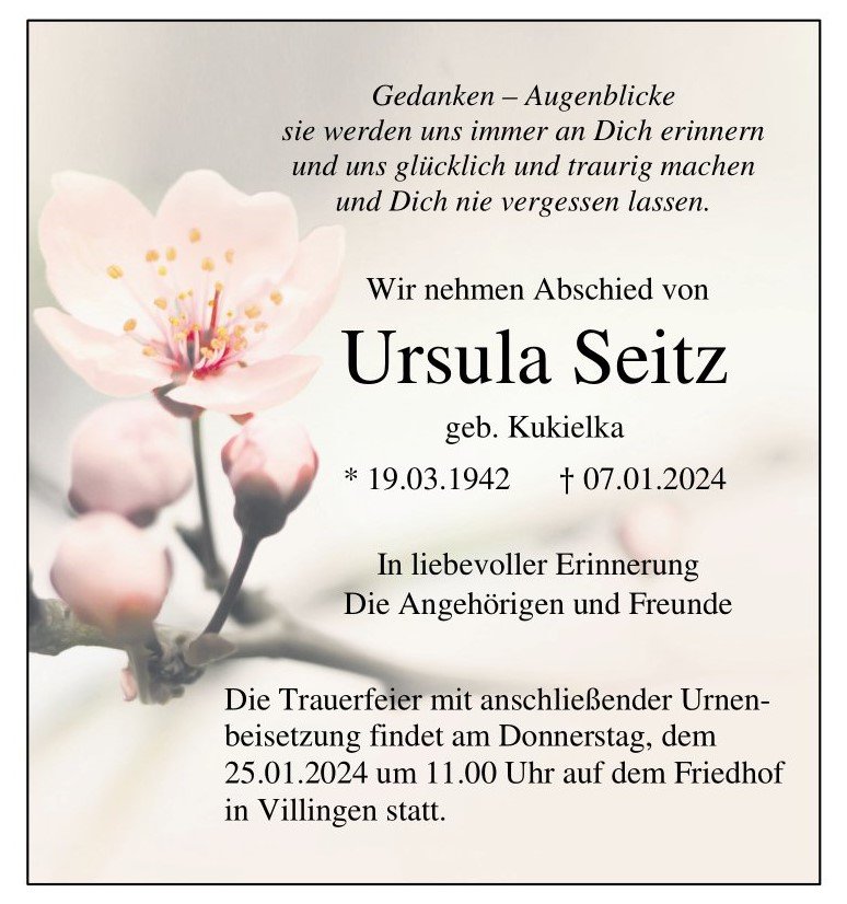 Ursula Seitz geb. Kukielka