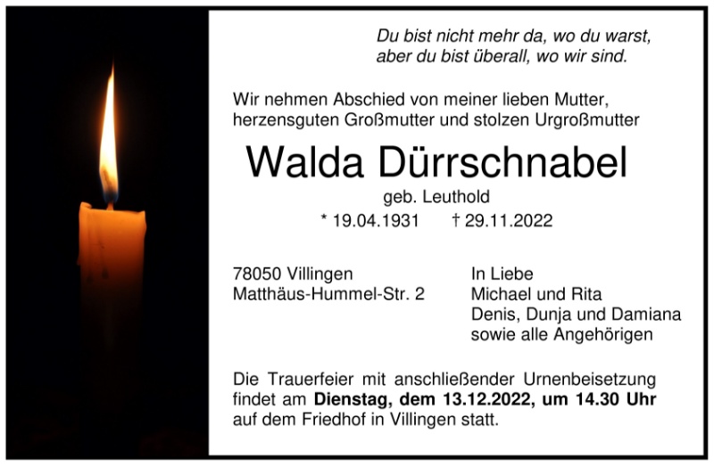 Walda Dürrschnabel geb. Leuthold