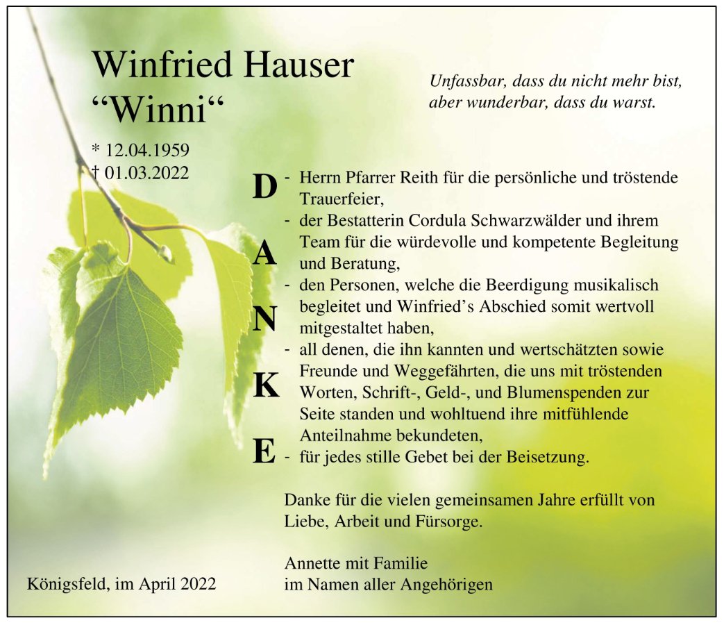 Lesen Sie hier die Anzeigen und Trauerpost!