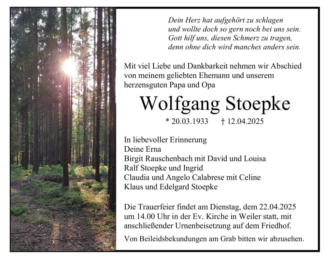 wir wünschen Ihnen von Herzen viel Kraft, dass Sie Menschen um sich haben, die Ihnen in dieser schweren Zeit beistehen und Halt geben. Zusätzlich können Sie auf dieser Gedenkseite Erinnerungen teilen und so das Andenken gemeinsam wachhalten.